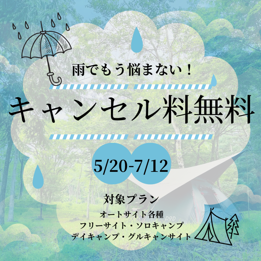 対象プラン:オートサイト各種、フリーサイト、ソロキャンプ、デイキャンプ、グルキャンサイト